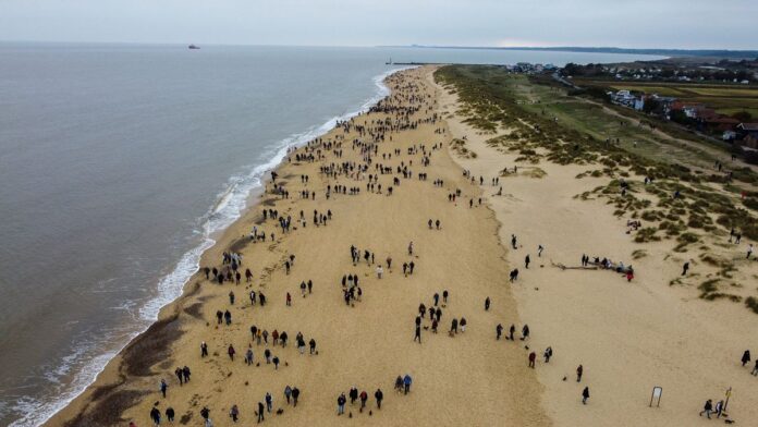 A massive gathering of over 2,000 lively dachshunds took place at a beach for one of the largest sausage dog walks globally. The event, known as the Sausage Stroll, featured hundreds of dachshunds and their owners parading from the harbor to the pier in Southwold, Suffolk, an Edwardian resort town. Since its inception in 2017, this annual event has evolved into a prominent meet-up for dog enthusiasts worldwide. Notably, it is recognized as the largest assembly of a single dog breed in the world.