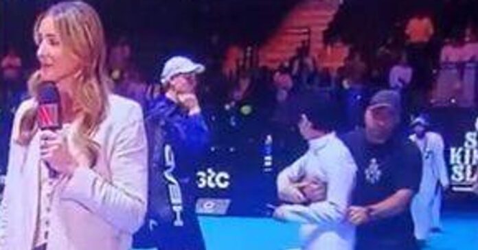 A spectator was escorted off the court by security personnel after approaching Jannik Sinner, the world No. 2 tennis player, at the Six Kings Slam tournament in Riyadh. Following a convincing 6-2, 6-3 win against Stefanos Tsitsipas in his first match of the event, Sinner was confronted by a young fan who seemed to be requesting his jacket after the match.