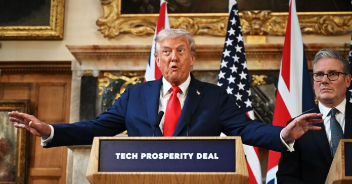 The sun emerged as Marine One departed from the grounds of Chequers, signaling the end of Donald Trump’s second state visit. Throughout the day, the sky had been overcast, causing Downing Street aides to anxiously monitor the weather to determine if the Red Devils parachute display would proceed. Fortunately, the anticipated rain never materialized, despite earlier concerns that led to relocating a planned outdoor press briefing indoors.